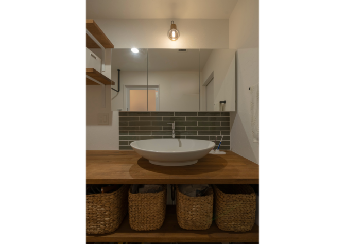 洗面台は、一日の始まりと終わりを過ごす大切な場所。小さな面積だからこそ、少し遊び心のあるデザインが映えます。