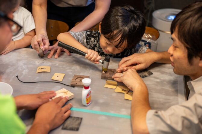 ワークショップではトントンしたり、やすりで削って、世界にひとつだけのオリジナルカスタネットができました。