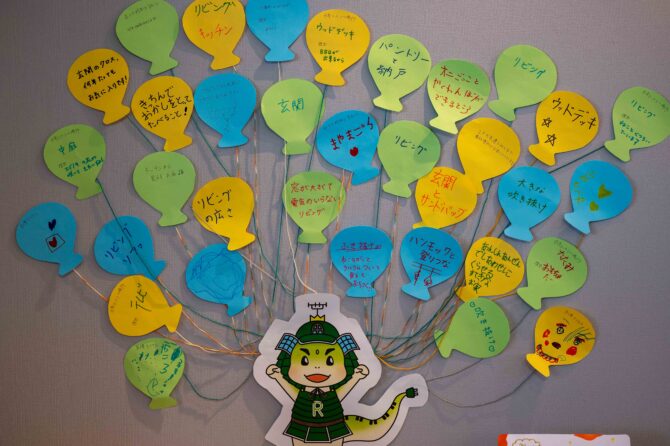 ご来場の皆様に、おうちの好きな所を描いて頂いたバルーン